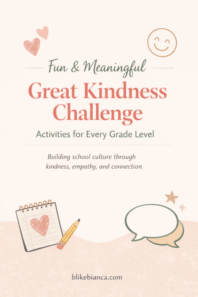 Whether you teach elementary, middle, or high school, let’s explore fun and engaging Great Kindness Challenge activities by grade level. These ideas are designed to feel joyful, authentic, and easy to implement, while still making a lasting impact!